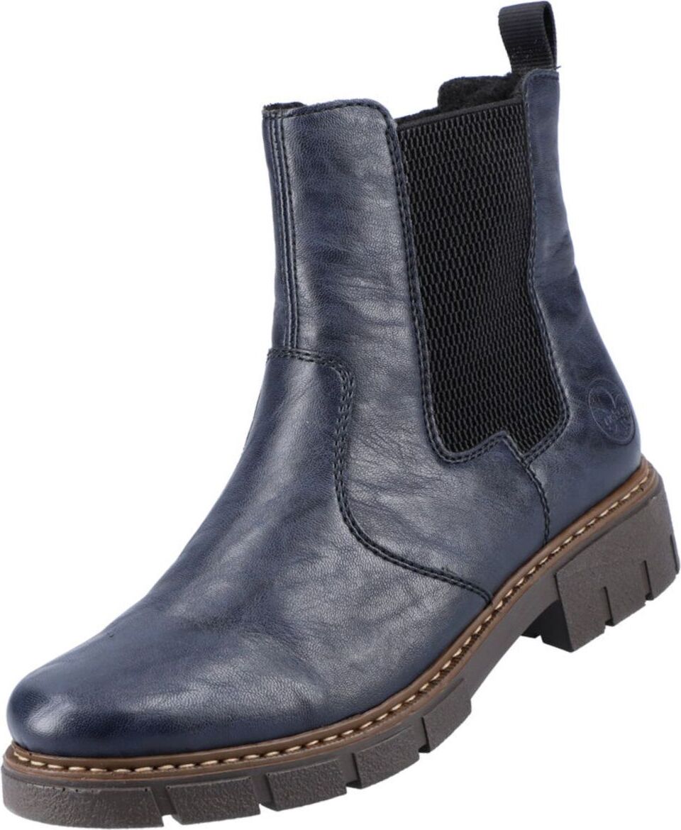 Die Rieker Z3561-14 Stiefelette in elegantem Blau ist der perfekte Begleiter für kalte, winterliche Tage. Das Obermaterial aus Kunstleder verleiht der Stiefelette eine ansprechende Optik und wird durch einen praktischen Elastikeinsatz im Seitenbereich abgerundet. Das Innenleben hält Ihre Füße dank des warmen Kunstfells und der weichen Textil-Decksohle angenehm warm. +