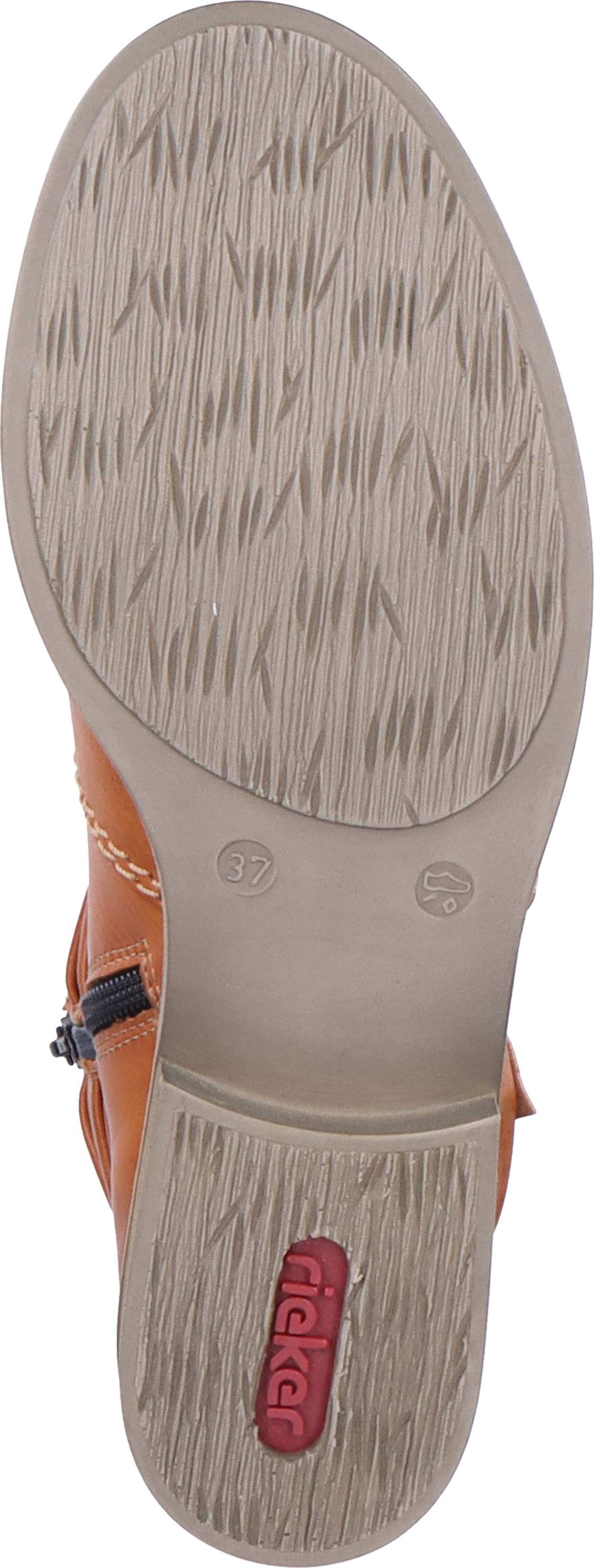 Winterboots RIEKER, Damen, Gr. 41 (7/7,5), braun (cognac), Lederimitat, used, Schuhe Winterboots, Winterstiefelette, Blockabsatz, Warmfutter, geraffter slouchy Schaft, Topseller