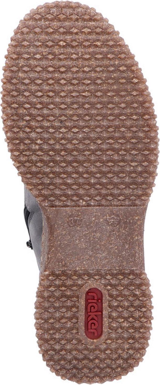 Diese Vielzahl an Komfort-Eigenschaften der Antistress-Schuhe kombiniert Rieker mit modischen Designs, die besonders durch die Liebe zum Detail überzeugen. Bereits seit 1874 produziert das Unternehmen, das sich in fünfter Generation im Familienbesitz befindet, Schuhmode und Taschen von bewährter Qualität.Die Rieker Antistress-Features:Leichter: Minimum an GewichtFlexibler: Höchstmaß an FlexibilitätMehr Platz: Eine Passform, die genügend Freiraum für die Veränderungen des Fußes im Tagesverlauf bietet Mehr Schockabsorption: Optimale Dämpfung der Schritte auf verschiedenen OberflächenDie Stiefeletten zeichnen sich durch folgende Merkmale aus:Modell: Y8414, Abteilung: DamenschuheObermaterial: Kunstleder, Innenmaterial: Textil, Laufsohle: TR, Decksohle: TextilAbsatztyp: Keilabsatz, Absatzhöhe: 4.9 cm, Schafthöhe: 9 cmWeite: Normal (F 1/2), Verschluss: Reißverschluss