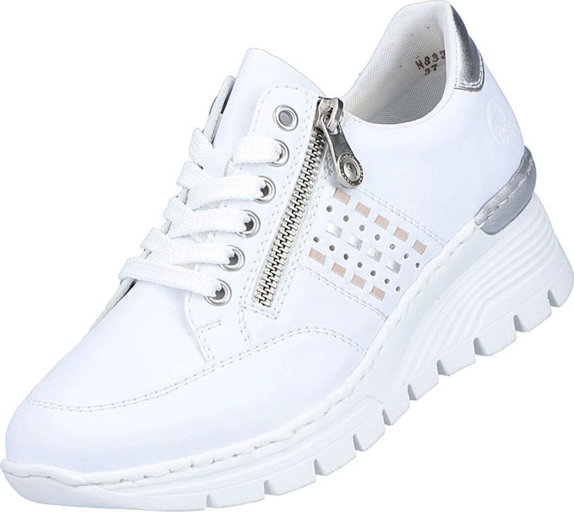 Rieker Wedgesneaker mit seitlichen Flechtdurchzügen, Freizeitschuh, Halbschuh, Schnürschuh (weiß)