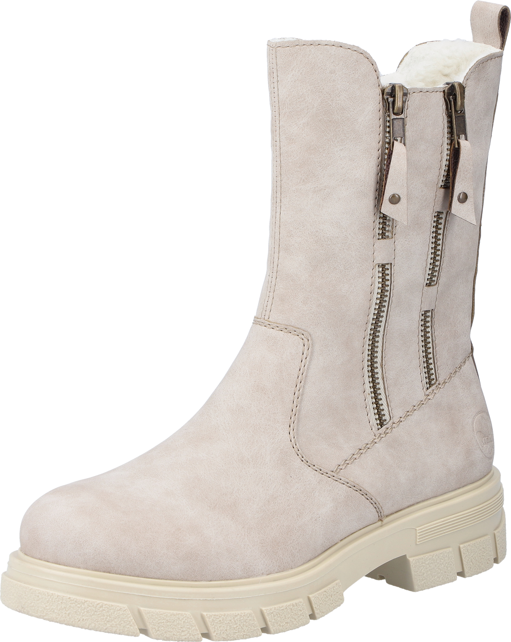 Rieker Damen Stiefelette Warmfutter 2 Zierreißverschlüsse Profilsohle Z9160, Größe:39 EU, Farbe:Beige Z9160_60_39