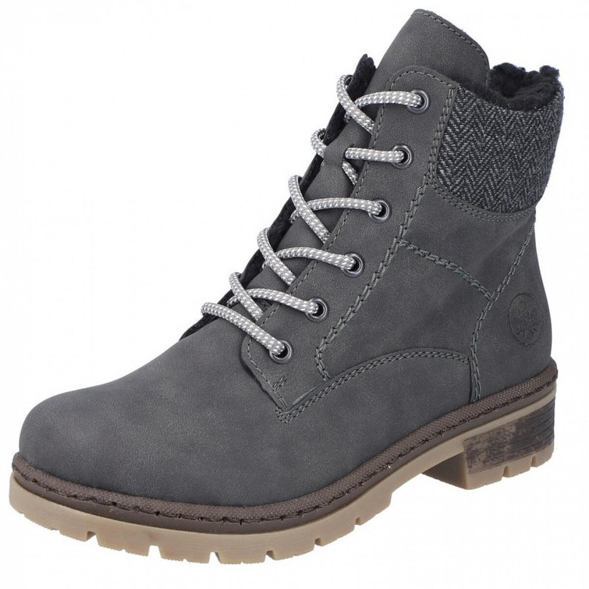 Rieker Winterstiefelette, Schnürboots, Stiefelette, Blockabsatz, mit Innen-Reißverschluss (grau)