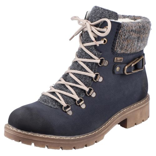 Rieker Winterstiefelette, Winterboots, Schnürboots mit Strickrand und Rieker-TEX (blau/grau)