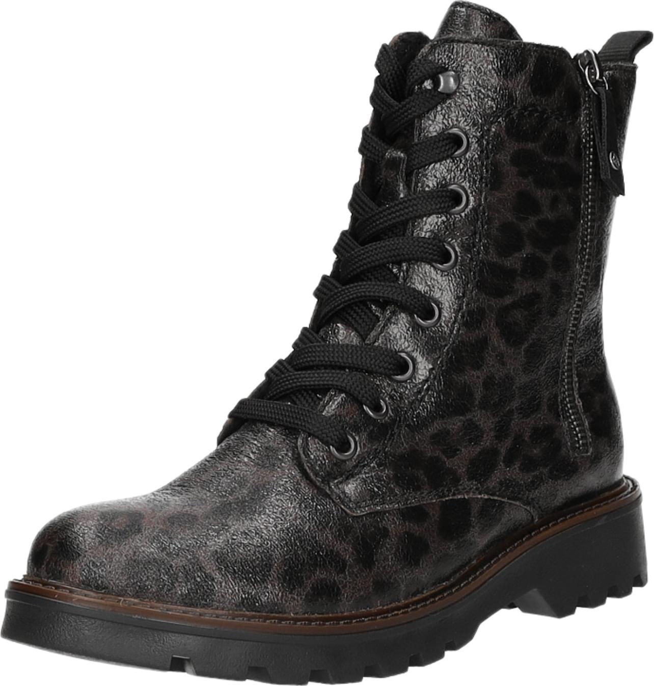 Rieker Winterstiefelette Winterboots, Schnürstiefelette, Blockabsatz, in aktueller Leo-Optik (grau)