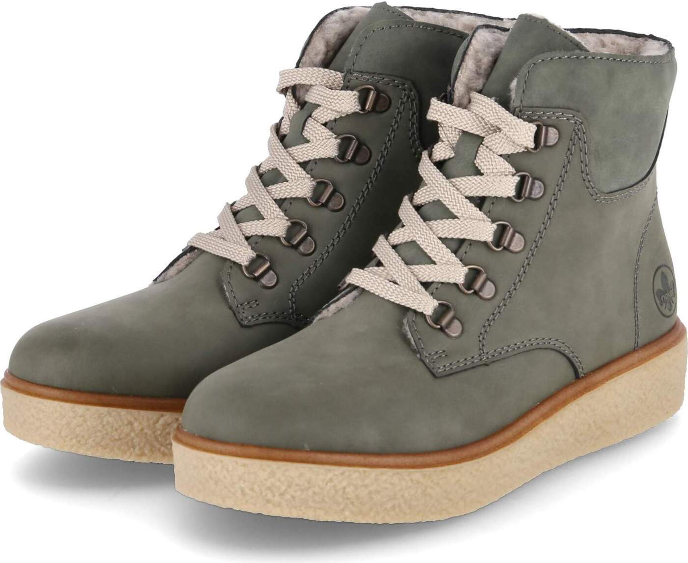 Als verlässlicher Winterbegleiter überzeugen diese grünen Rieker Schnürstiefeletten mit durchdachter Konstruktion und klarer Formensprache. +