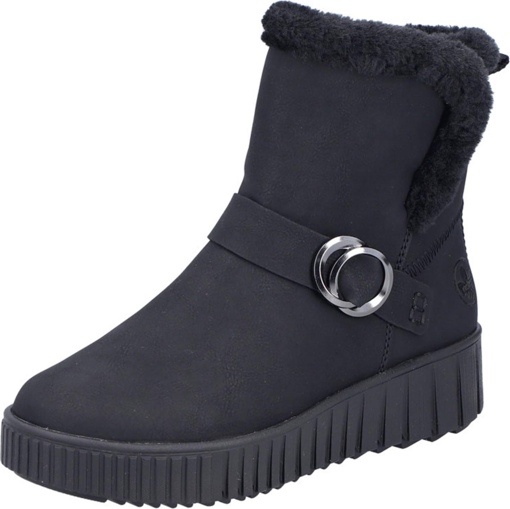 Warm gefüttert, wetterfest und stilvoll: Die schwarzen Winterstiefeletten von Rieker sind verlässliche Begleiter durch die kalte Saison. +