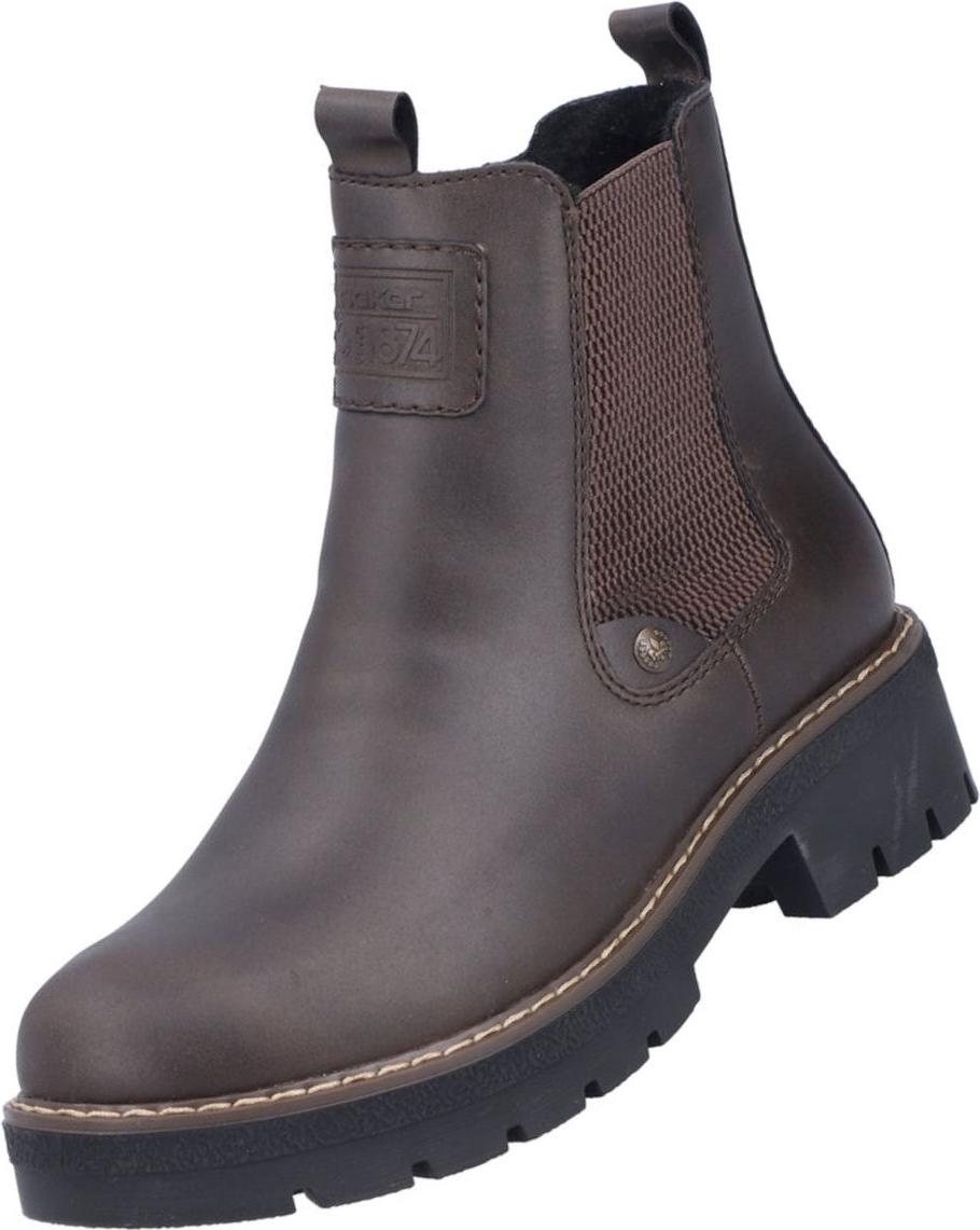 Robust im Alltag und gepflegt im Auftritt: Der Rieker Chelseaboot punktet mit Warmfutter für kühle Temperaturen und einer pflegeleichten Kunstleder-Oberfläche in Braun, veredelt durch dunkelbraune Details. +