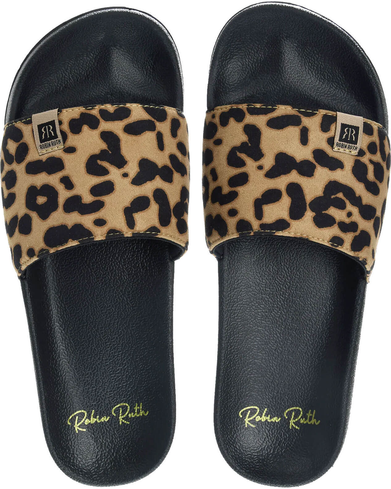 Robin Ruth Slipper Damen Slipper Sandale mit flacher Sohle - Badeschuhe Badelatschen (braun/schwarz)