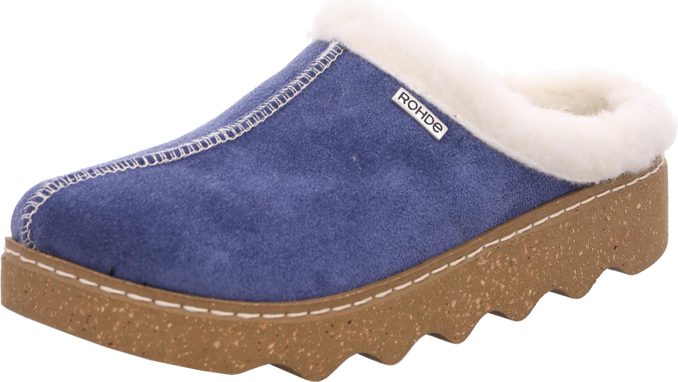 Rohde FOGGIA-D Pantoffel Hausschuh, Clog mit herausnehmbarer Innensohle aus Lammwolle (blau)