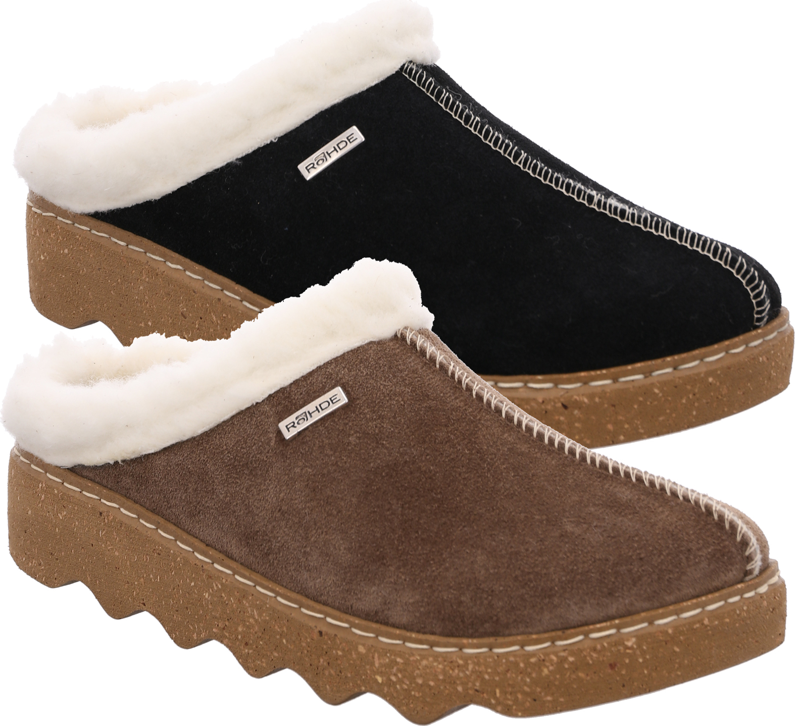 Rohde FOGGIA-D Pantoffel Hausschuh, Clog mit herausnehmbarer Innensohle aus Lammwolle (schwarz)