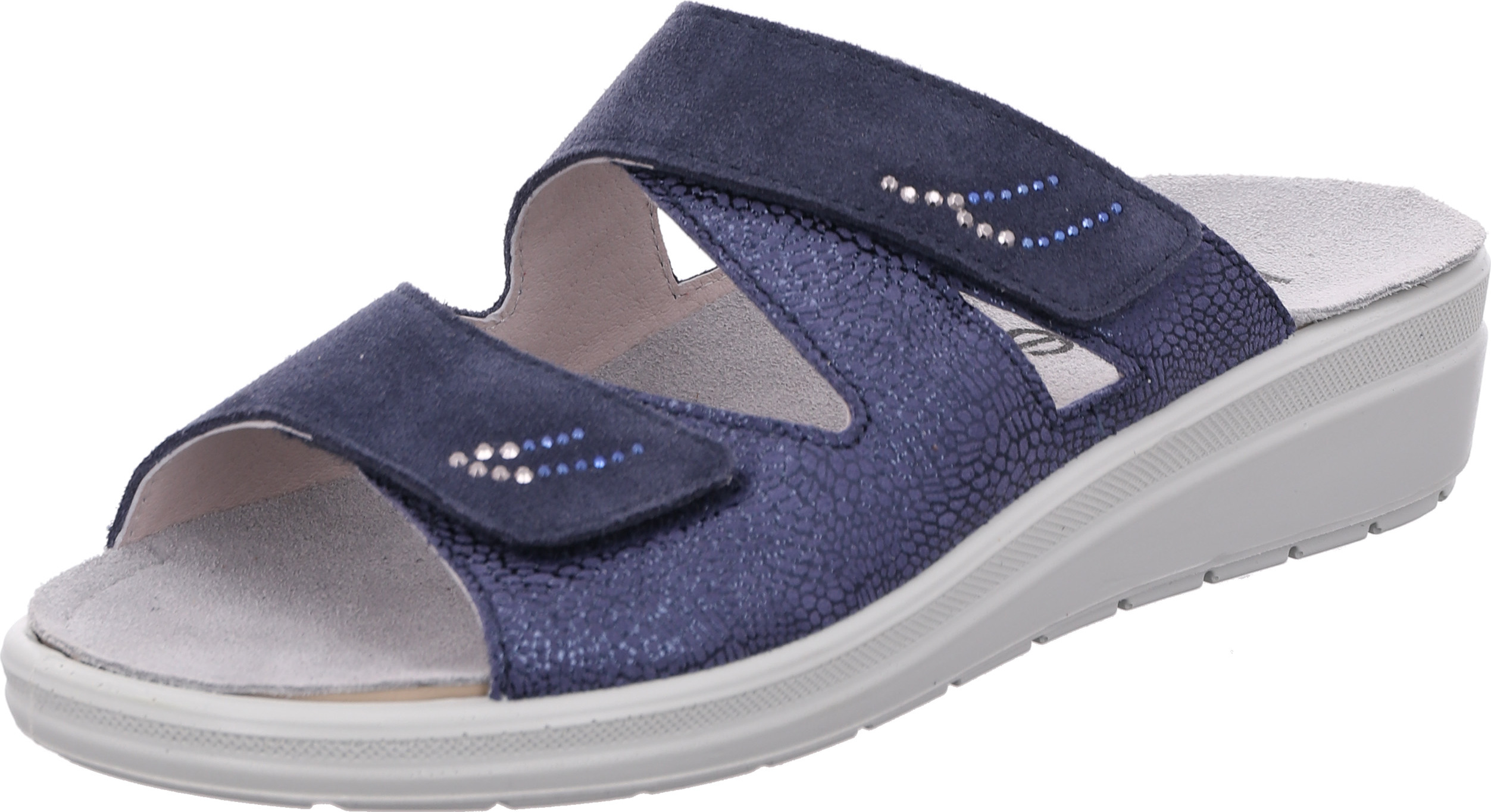 Rohde Damen Pantolette Leder Glitzer Druck Strass Wechselfußbett Rivella 5729, Größe:40 EU, Farbe:Blau 5729_56_40
