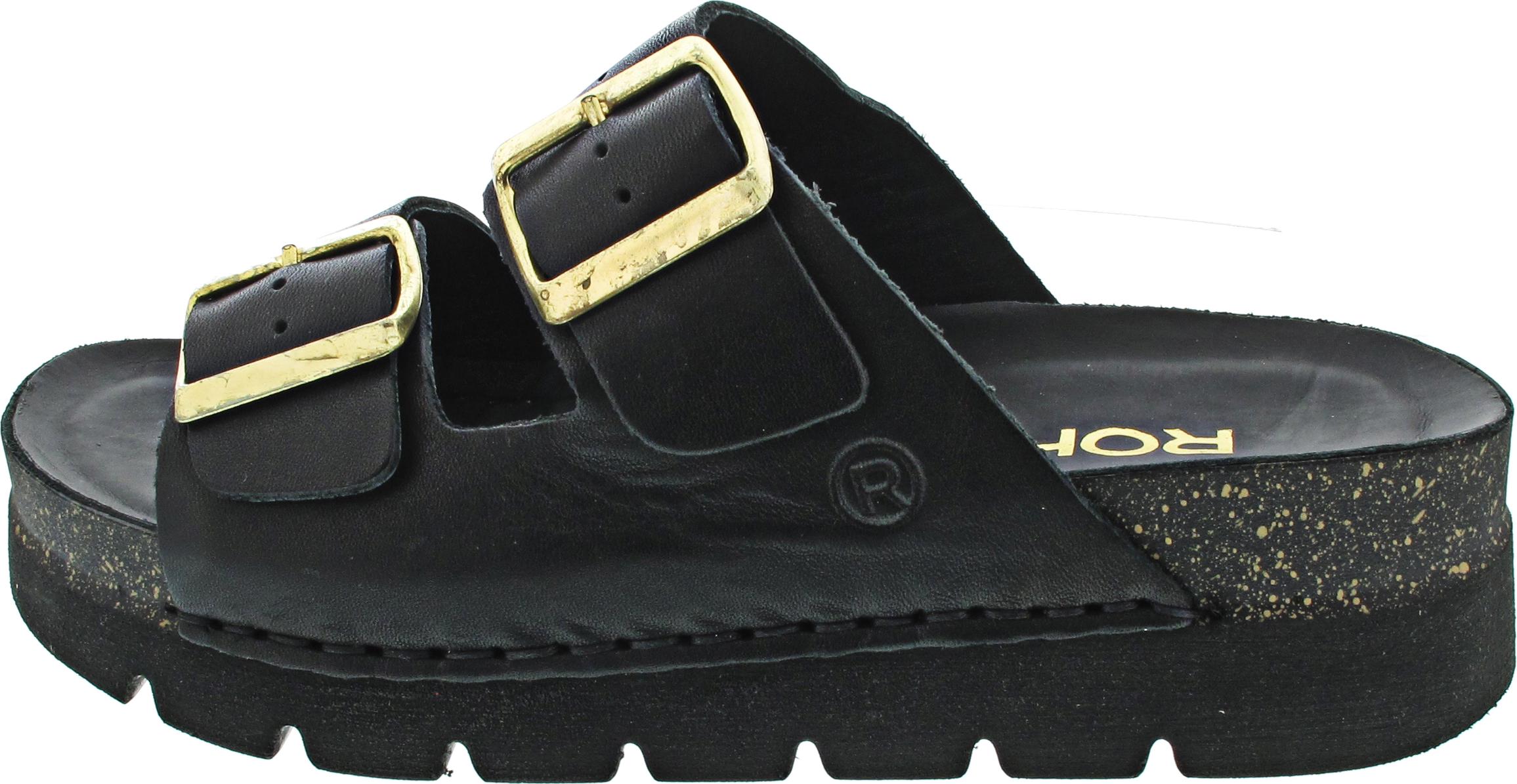 Rohde LATINA - moderner und bequemer Schnitt - supersoftes schwarzes Leder-Fußbett - Weite: G - flexible Laufsohle - variable Passform, mit weitenverstellbaren Schnallen - bequeme Pantolette für alltäglichen Gehkomfort
