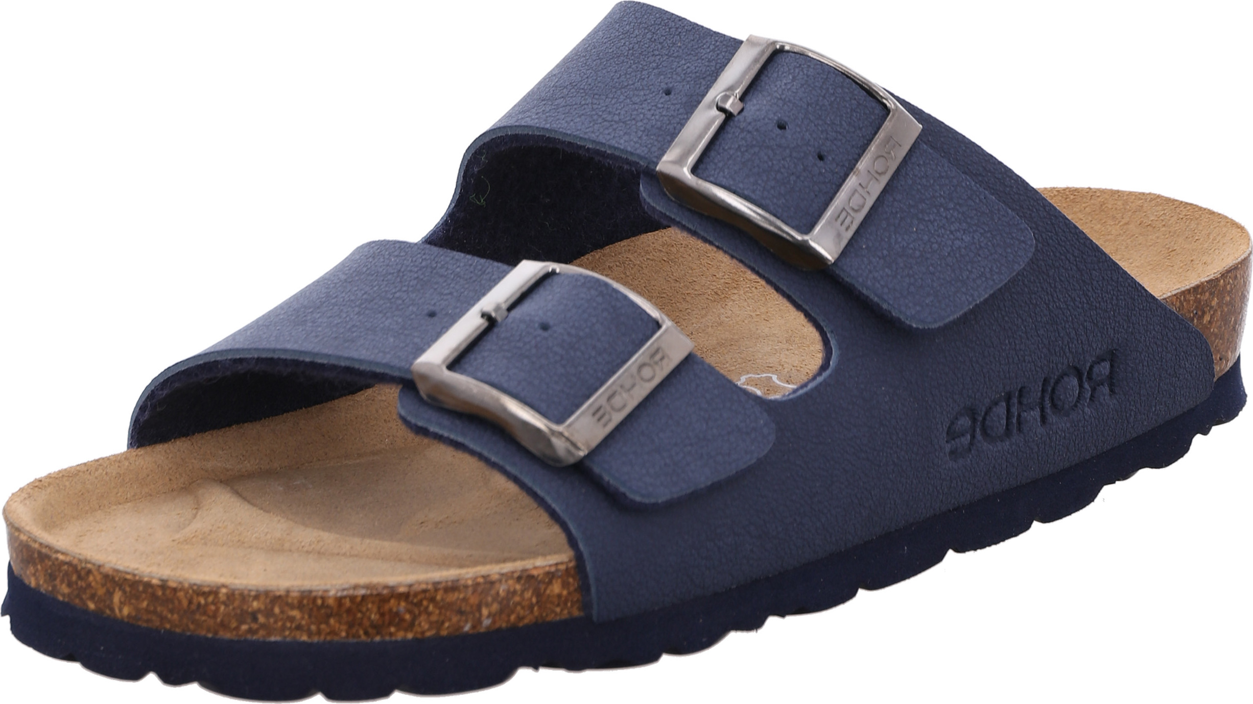 Der Klassiker: Dieser ROHDE Zweiriemer wird mit einer rutschfesten Sohle und einem tiefen, atmungsaktiven Fußbett mit flexiblem Kork-Latex-Kern gefertigt. +