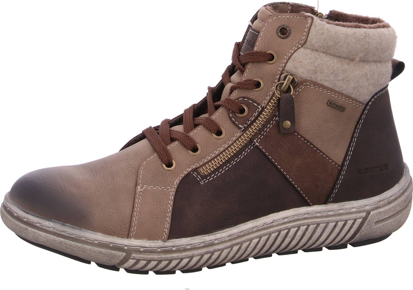 Gewicht , 1000 g, |Farbe , beige, |Obermaterial , Materialmix: Synthetik/Textil, |Obermaterialart , Materialmix: Synthetik/Textil RomiTEX, |Obermaterialeigenschaften , TEX-Membran, |Innenmaterial , Warmfutter, |Innenmaterialeigenschaften , wärmend, |Besondere Merkmale , mit TEX-Membran, |Verschluss , Reißverschluß & Schnürung, |Schuhspitze , Rund, |Laufsohlenmaterial , TPR, |Membrane , RomiTEX, |Reinigungseigenschaften , mit Imprägnierspray, |Schuhweite , normal, |Schafthöhe , 14 cm, |Schaftweite , Normal, |