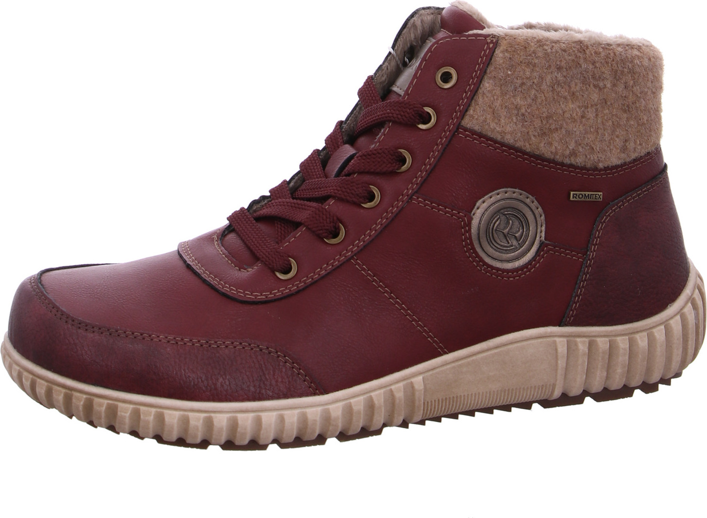 Gewicht , 950 g, |Farbe , bordeaux, |Obermaterial , Materialmix: Synthetik/Textil, |Obermaterialart , Materialmix: Synthetik/Textil RomiTEX, |Obermaterialeigenschaften , TEX-Membran, |Innenmaterial , Fleece, |Innenmaterialeigenschaften , weich und wärmend, |Besondere Merkmale , mit TEX-Membran, |Verschluss , Reißverschluß & Schnürung, |Schuhspitze , Rund, |Laufsohlenmaterial , TPR, |Membrane , RomiTEX, |Reinigungseigenschaften , mit Imprägnierspray, |Schuhweite , normal, |Schafthöhe , 11 cm, |Schaftweite , Normal, |