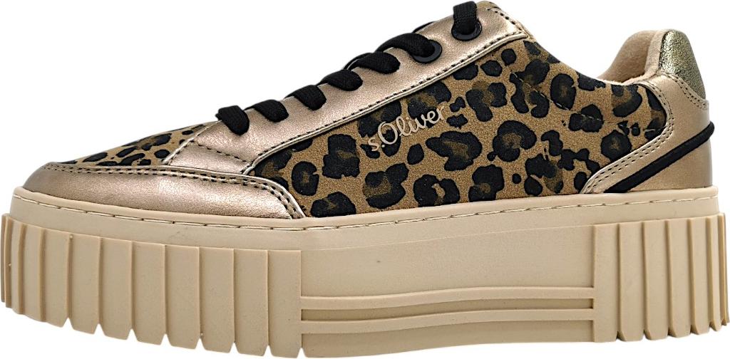 Dieses Modell ist ein schicker Damen Sneaker aus dem Hause S.Oliver und überzeugt im angesagten Look.Das Obermaterial aus pflegeleichtem Kunstleder in Animal Leo Print überzeugt durch seinen Overlay Look. +