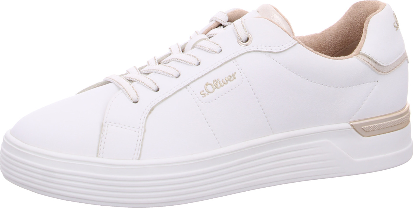Dieser auffallend gutaussehende Damen Sneaker aus dem Hause S.Oliver begeistert im angesagten Look.Das Obermaterial besteht aus pflegeleichtem Kunstleder in Weiß. +