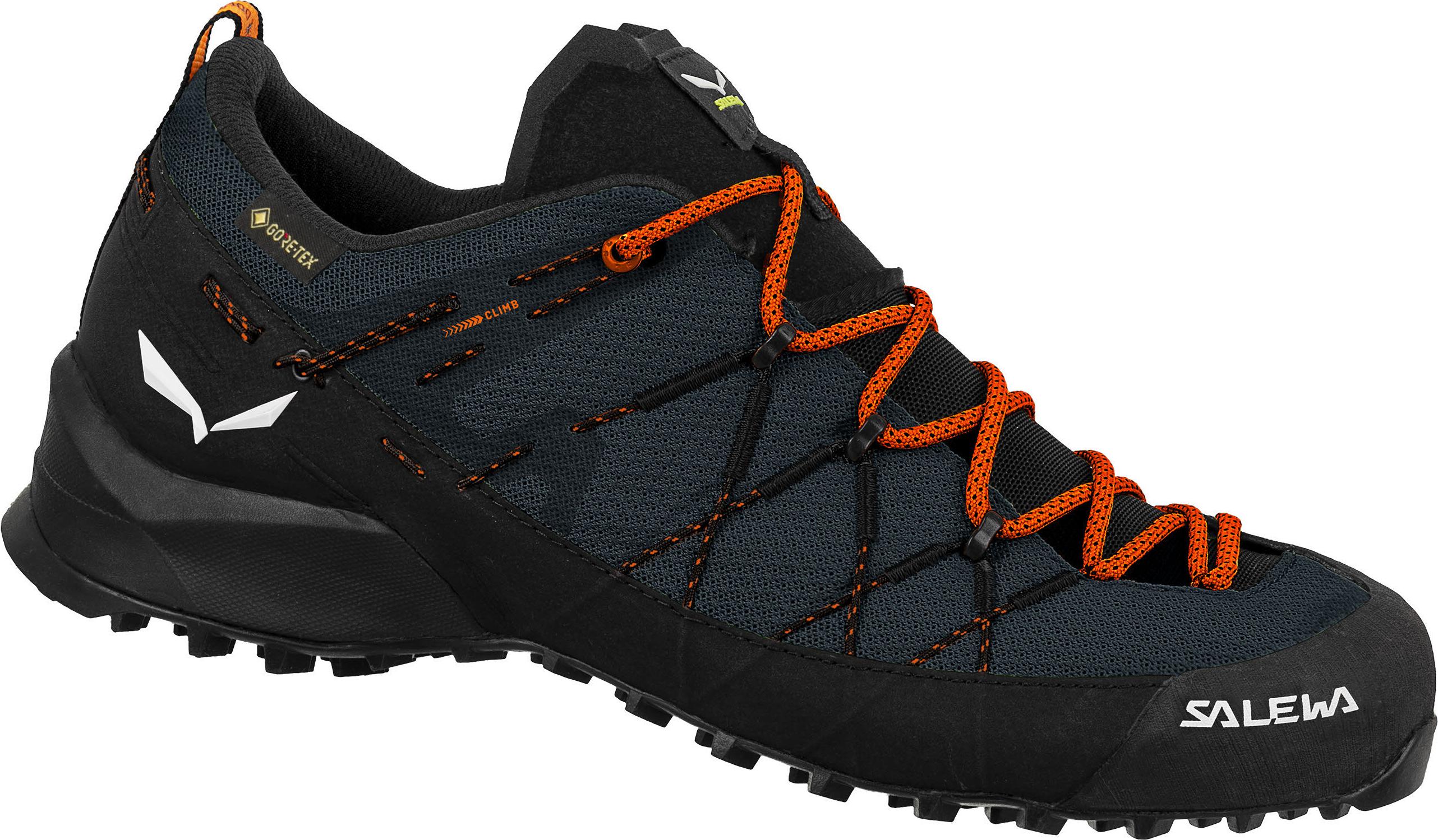 ein wasserdichter, atmungsaktiver GORE-TEX® Approach-Schuh für Männer, der für gute Kletter-Performance und technische Zustiege entwickelt wurde in den Dolomiten gibt es so viele Klassiker unter den Klettertouren, dass man manchmal gar nicht weiß, wo man anfangen soll: Drei Zinnen, Marmolada, Cinque Torri, Vajolet-Türme, Tofana di Rozes ...wir fertigen das Obermaterial des Wildfire 2 Schuhs aus robustem, recyceltem Mesh und verstärken es mit einem Netz aus Kevlar-Drähten, das deinen Fuß angenehm und passgenau umhüllt und für Flexibilität, verbesserte Stabilität und Fersenhalt sorgtaußerdem lässt sich der Wildfire 2 mit dem SALEWA® Switchfit Verstellsystem schnell und einfach vom Wander- in den Klettermodus umschaltendas Ergebnis: Bessere Leistung auf Kanten sowie beim Klettern und insgesamt mehr Sicherheit in technischem Terraindas Multi Fit Footbed Plus (MFF+,) bietet darüber hinaus ein individuell anpassbares Fußbett, damit du dich ganz nach Bedarf für eine engere oder weitere Passform entscheiden kannstdamit du auch bei ungemütlichem Wetter gut vorankommst, ist der Wildfire GTX mit einem GORE-TEX® Extended Comfort Futter ausgestattet, das dir wasserdichten und atmungsaktiven Schutz bietetdie Pomoca Speed MTN-Außensohle verfügt über eine Kletterzone im Zehenbereich und starke, ausgeprägte Profilstollen für gute Bodenhaftung im Schlamm und auf weichem Untergrund, während die S-Path-Technologie das natürliche Abrollen unterstütztder leicht haftende POMOCA-Gummi bietet dir sowohl bei trockenen als auch bei nassen Bedingungen gute Traktionunser leistungsstarker, technischer Zustiegsschuh mit Switchfit-Einstellung empfohlen für: Wandern, ZustiegObermaterial: atmungsaktives Netzgewebe aus recyceltem Kevlar® Cables Cage, schützender TPU-Rand, 3F-System mit Kevlar®-SchnürenFutter: GORE-TEX® Extended ComfortAußensohle: Pomoca Speed MtnSchuhabsatz: 11mm (Heel Stack Height 28 mm / Toe Stack Height 17 mm)Gewicht: 395 GrammFarbe: Navy Blazer BlackModell 2022/2023