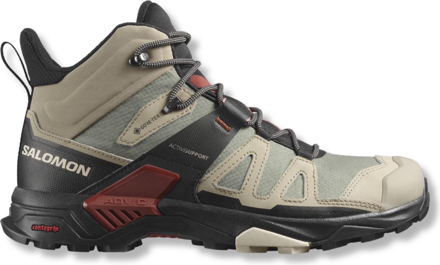 Verbessere deine Outdoor-Abenteuer mit dem Salomon X Ultra 4 Mid Gtx, der in einem robusten ",Khaki Green", (473525) gefertigt ist. +