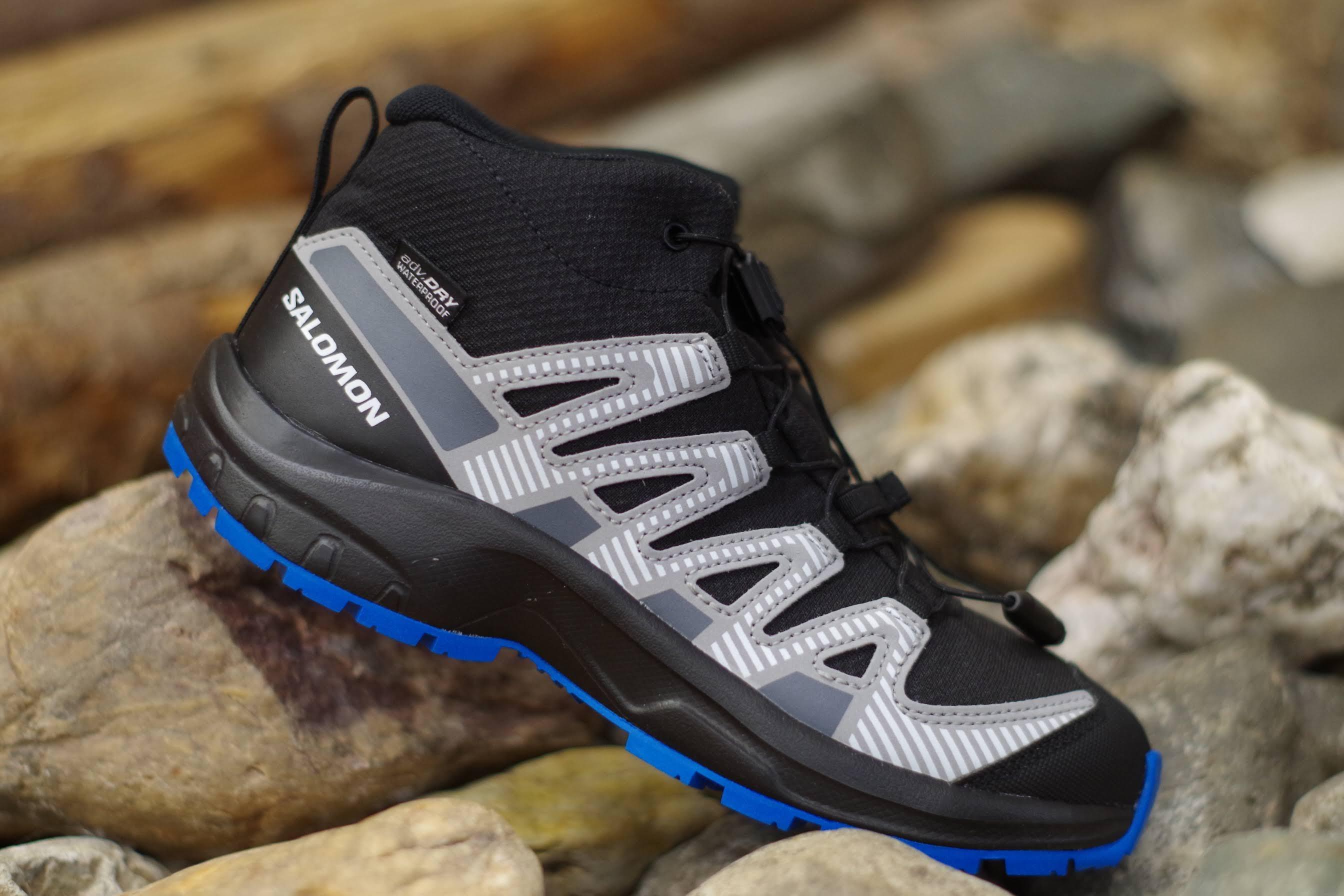 Mit einer leichten Regenjacke ist für wechselhaftes Wetter vorgesorgt und das Outdoor-Outfit komplett. Mit diesen Unisex-Wanderschuhen »XA PRO V8 MID WP J« von Salomon wird jedes Terrain unsicher gemacht.