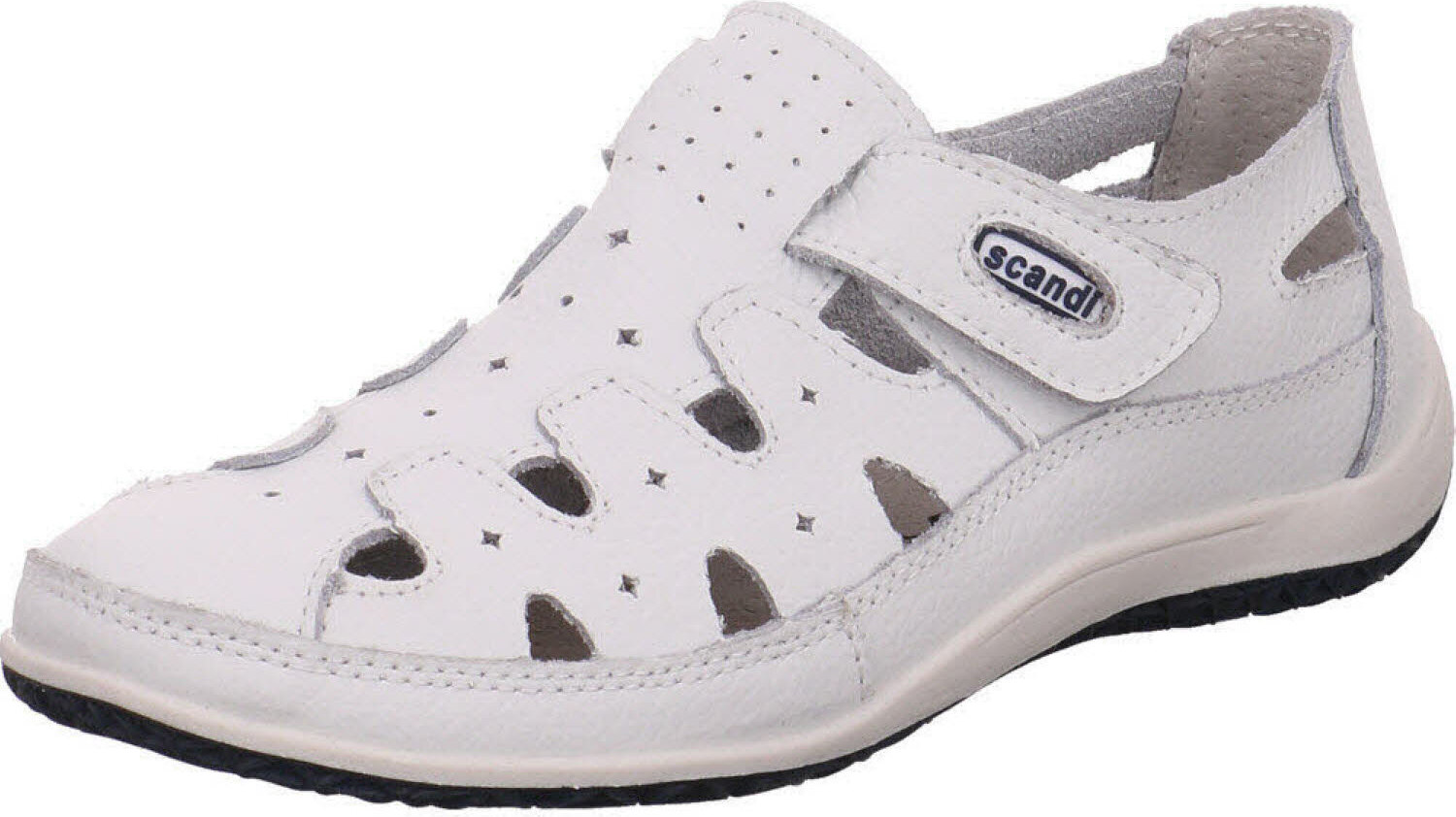 Dieser Damen Slipper von Scandi ist eine perfekte Wahl für den kommenden Frühling.Er wurde aus Echtleder in Weiß gefertigt und mit tollen Cutouts versehen. +