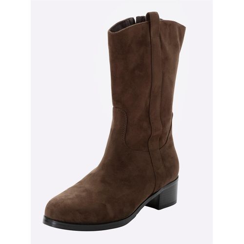 40 mm- Gefüttert, aus Veloursleder-ImitatStiefelette aus Veloursleder-Imitat. Markante Teilungsnähte, die Zierlasche und der etwas höhere Schaft lassen hier die modische Cowboystiefel-Optik entstehen.