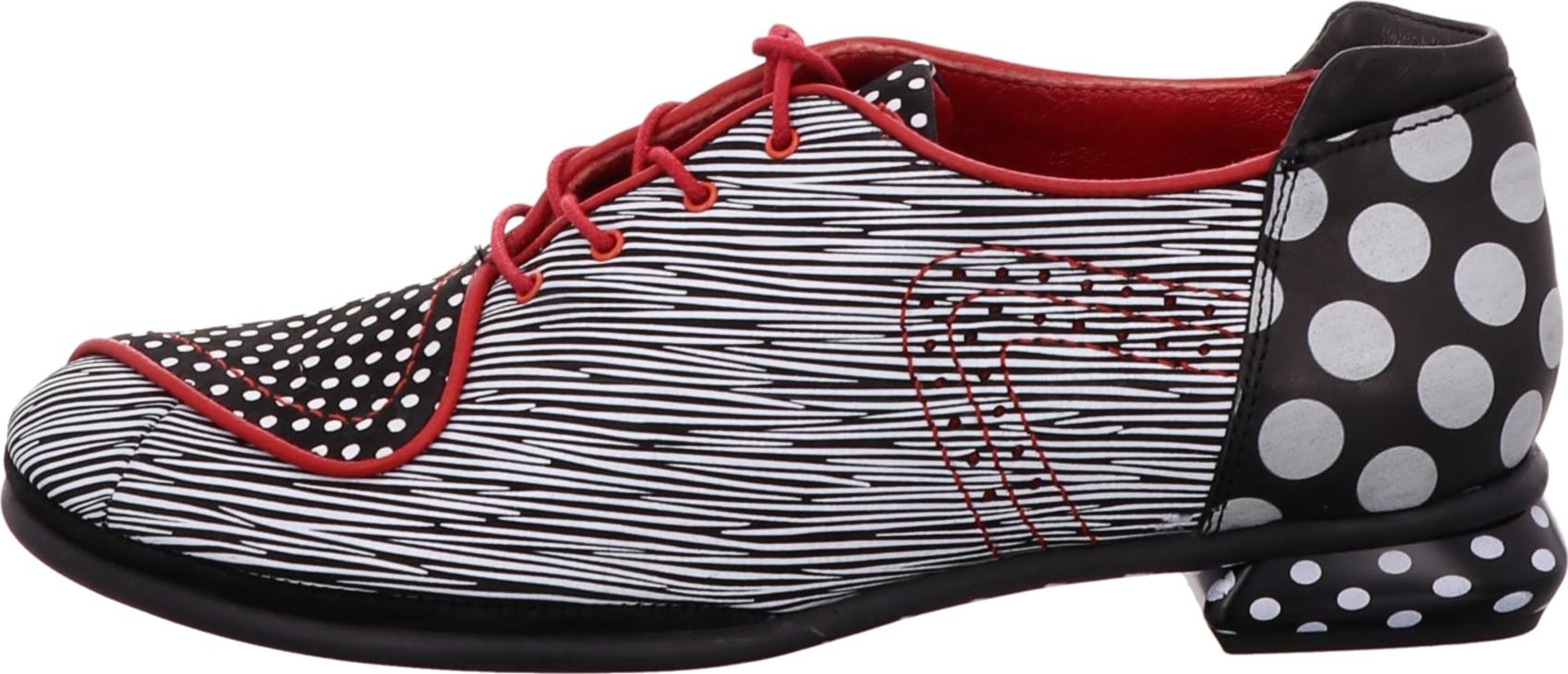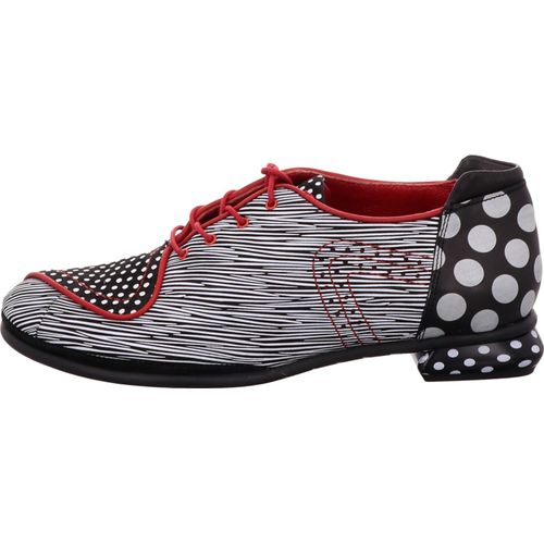 Einfach mal was Neues versuchen und sich den klassischen gepunkteten und gestreiften Schnürschuh aus Glattleder in Weiß von Simen für Damen holen. +