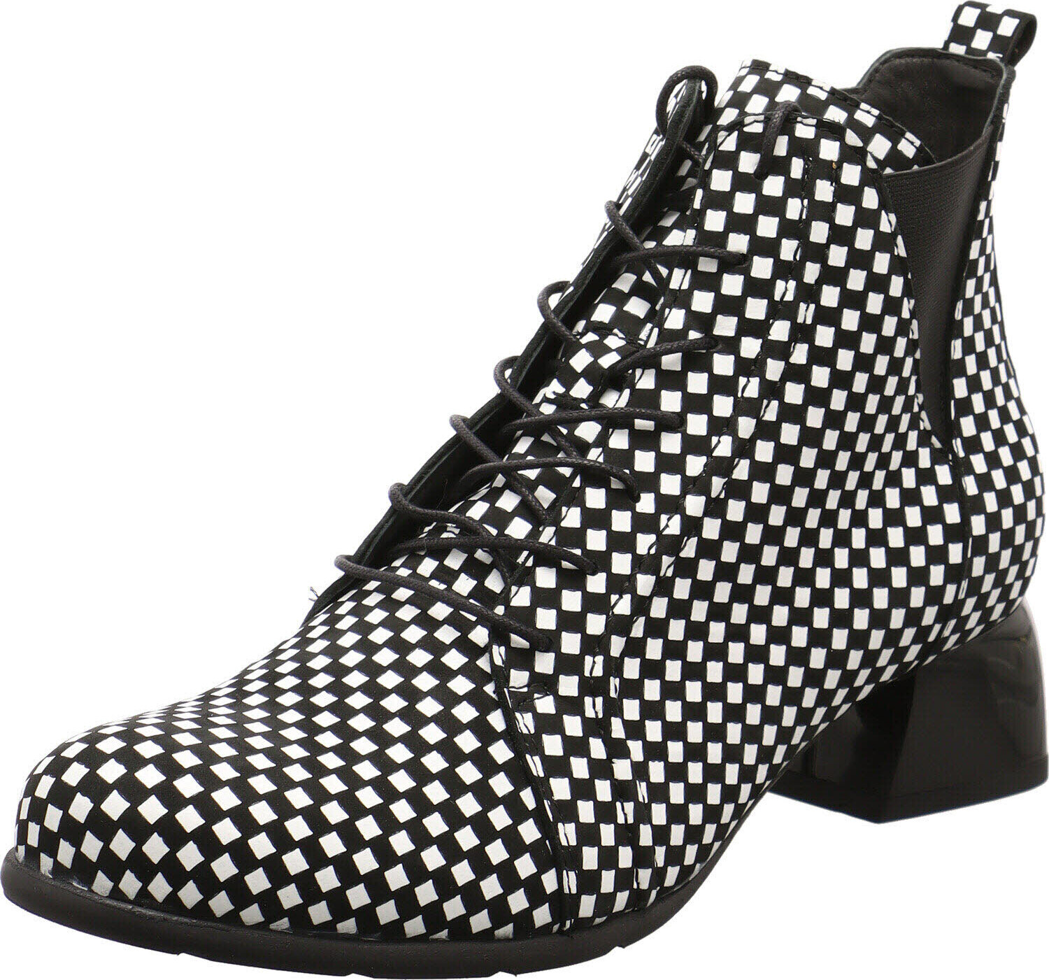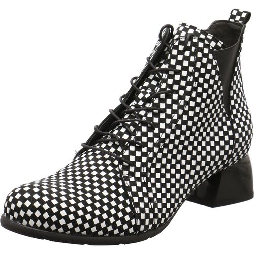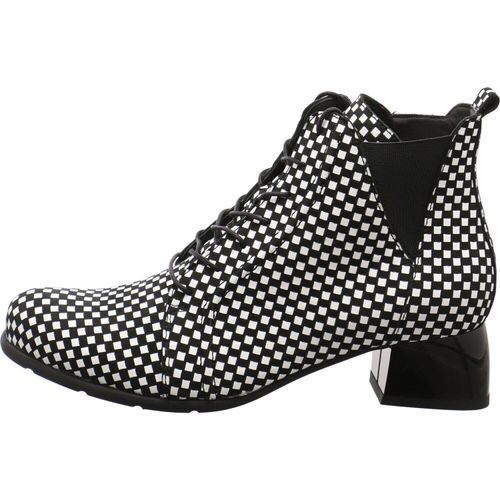Diese Damen Schnürstiefelette von Simen, ist genau so individuell wie du.Das Obermaterial aus Echtleder presentiert sich im Karo Design in Schwarz, Weiß.Unterstrichen wird das extra vagante Desing durch die besondere Linienführung der Stiefelette. +