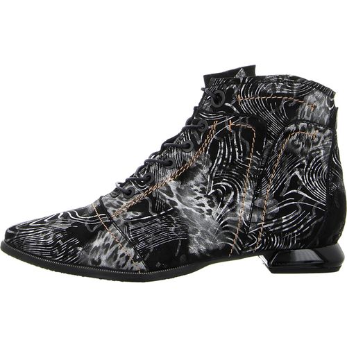 Simen 8045A SCHWARZ SILBERN Schnürstiefelette Echtleder Damen in schwarz