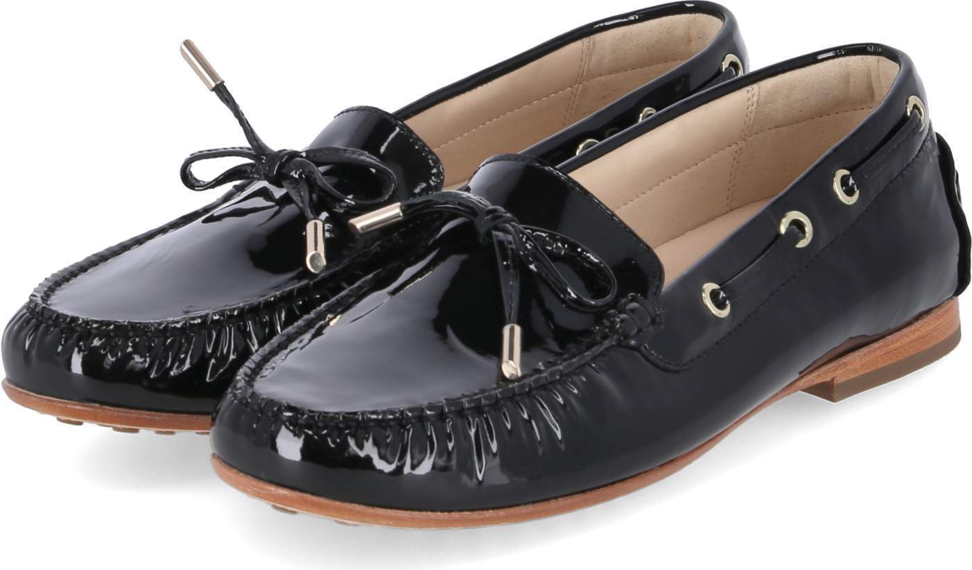 Ein Mokassin-Klassiker aus dem Hause Sioux! Dieses Modell mit modischer Schleife ist aus weichem Lamm-Lackleder gefertigt und hat eine bequeme G-Weite. +