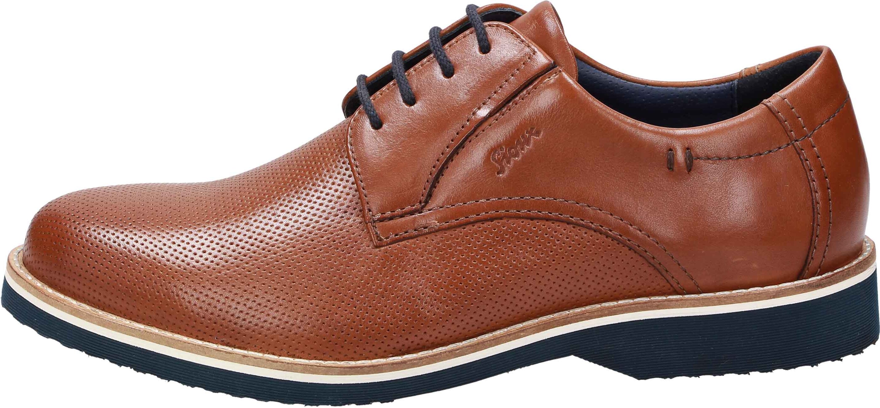 Sommerlich-leichter Herrenschnürschuh mit feiner Lochung in Ago-Machart aus Kalbglattleder mit 4-Ösen-Schnürung in H-Mehrweite! Gefüttert im Quartier mit Lammleder und im Vorfußbereich mit Funktionsstretch-Stoff. +