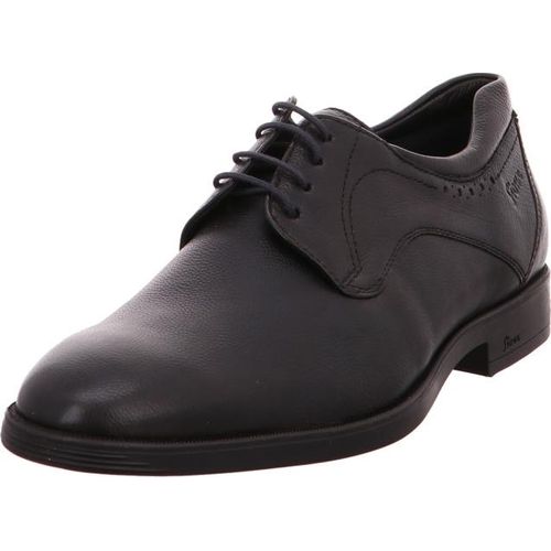 Zeitloser Business-Schnürschuh aus Kalbnappa-Leder mit Gummisohle in bequemer H-Weite mit gepolstertem Wechselfußbett.