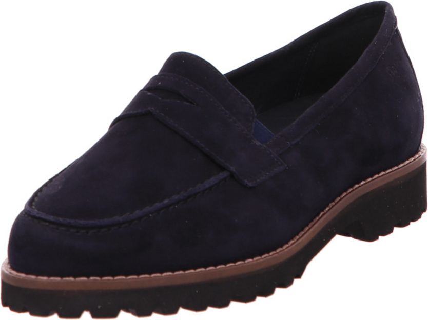 Damenslipper in bequemer H-Extra-Weite im College-Look mit Pennyloafer-Garnitur. +