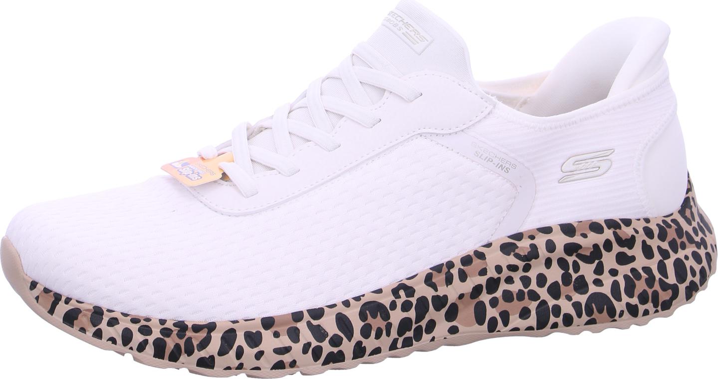 Marke: SkechersModell-Nr.: 117246 WHTModellname: BOBS SQUAD CHAOS - DAILY PROWLArt: Damenschuhe - Halbschuhe - Sneaker, HANDS FREE SLIP INSFarbe: weiß +, Sohle in Leo-Muster hellbraun +, schwarz (white)Obermaterial: Textil (Mesh, VEGAN +, Maschinen Waschbar)Innenfutter: Textil / Mesh - atmungsaktiv, Fersenbereich weich gepolstertInnensohle: Textil Fußbett, Memory FoamWechselfußbett: nicht herausnehmbare InnensohleLaufsohle: PU (Polyurethan) - extra leichtAbsatz: flach - kein AbsatzSchuhform: rundGrößenangabe: fällt normal ausWeitenangabe: G - normal Weiteinterne Artikelnummer für Ihre Rückfragen: 246-10-0091