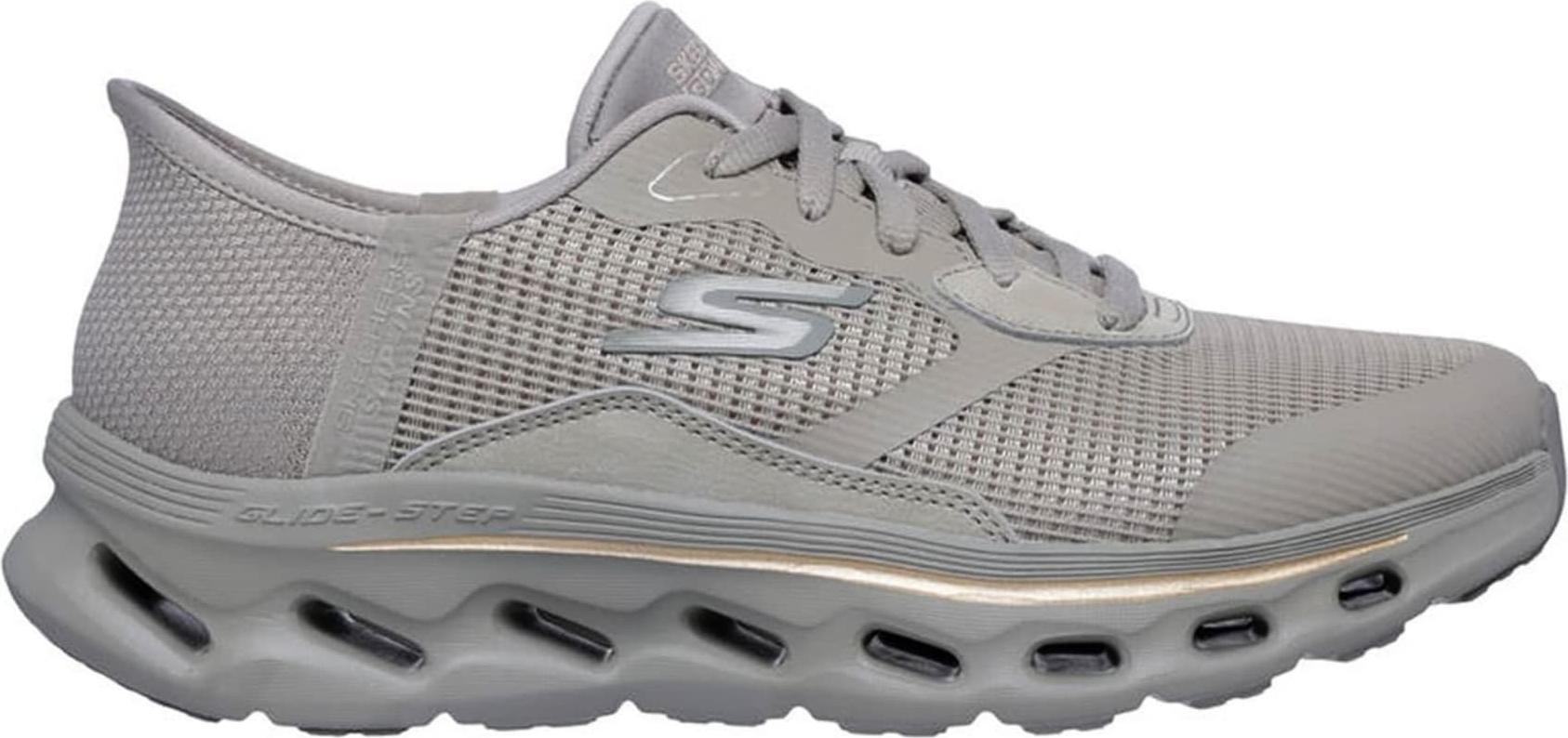 Marke: SkechersModell-Nr.: 125115 TPEModellname: GO WALK GLIDE STEP 2.0 - BELAHArt: Damenschuhe - Halbschuhe - Sneaker, HANDS FREE SLIP INSFarbe: taupe braun (taupe)Obermaterial: Textil / Mesh +, Synthetik (Vegan, Maschinen Waschbar)Innenfutter: Textil - weich gepolstertInnensohle: Textil Fußbett, Air Cooled Memory Foam GOGA MATWechselfußbett: nicht herausnehmbare InnensohleLaufsohle: PU-Laufsohle mit Gummi Einsätze, GLIDE STEP TechnologieVerschluss: 5fach SchnürungAbsatz: flach - kein AbsatzSchuhform: rundGrößenangabe: fällt normal ausWeitenangabe: G - normal Weiteinterne Artikelnummer für Ihre Rückfragen: 236-35-0018