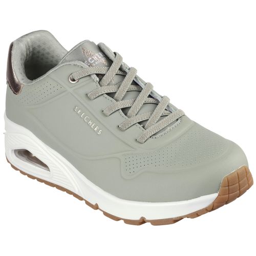 Entdecken Sie die neue Dimension von Komfort und Stil mit den Skechers UNO SHIMMER AWAY Sneakers in einem trendigen Grünton – SAGE. Diese modischen Low-Top-Schuhe sind nicht nur ein echter Eyecatcher, sondern bieten auch das wohlige Gefühl, das Ihre Füße verdienen. +