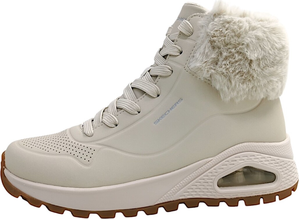 Entdecken Sie die perfekte Kombination aus Stil und Komfort mit der Skechers Uno Rugged-Fall Air Schnürstiefelette in strahlendem Weiß. Diese warm gefütterte Damenstiefelette ist nicht nur ein echter Blickfang, sondern auch Ihr idealer Begleiter für kühle Tage. +