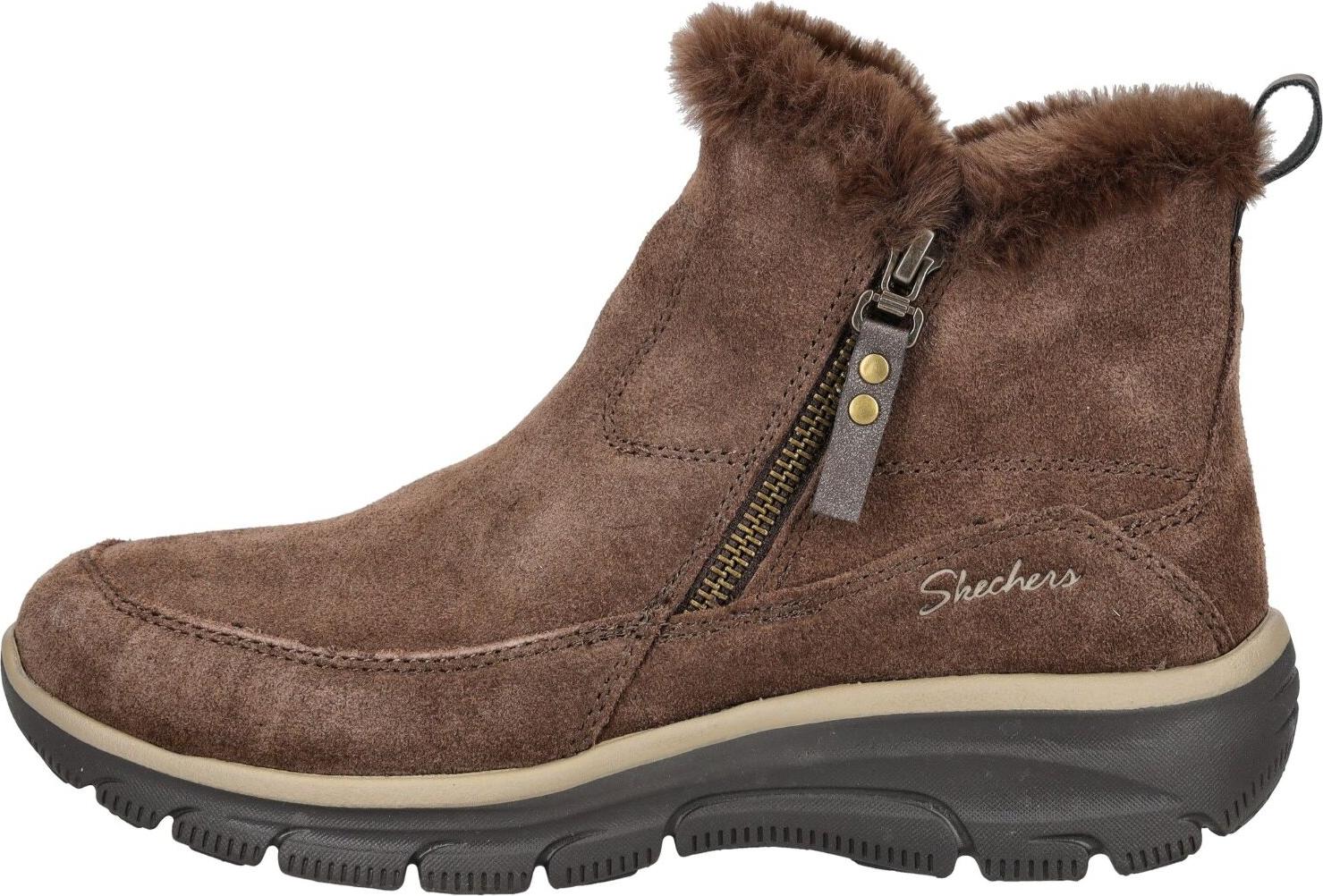 Skechers Damen Boot aus braunem Veloursleder mit kuscheligem Futter aus Kunstfell, Reißverschluss und Memofußbett