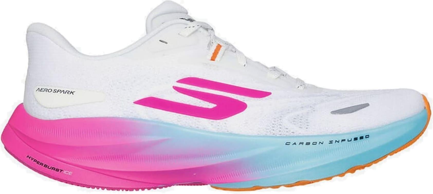 Marke: SkechersModell-Nr.: 172200 WMLTModellname: SKX AERO SPARKArt: Damenschuhe - Sportschuhe, Ultra leicht Performance SneakerFarbe: weiß +, pink +, Sohle in türkis +, pink +, orange (white/multi)Obermaterial: Textil (Maschinen Waschbar)Innenfutter: Textil / Mesh - atmungsaktiv, weich gepolstertInnensohle: Textil Komfort Fußbett, ArchFit - Gewölbe-UnterstützungWechselfußbett: nicht herausnehmbare InnensohleLaufsohle: Gummi +, Polyurethan (PU) - extra leicht, GoodYear Performance Gummi +, Kohlenstoff HyperBurst SchaumVerschluss: 5fach SchnürungAbsatz: flach - kein AbsatzSchuhform: rundGrößenangabe: fällt normal ausWeitenangabe: G - normal Weiteinterne Artikelnummer für Ihre Rückfragen: 203-10-0085