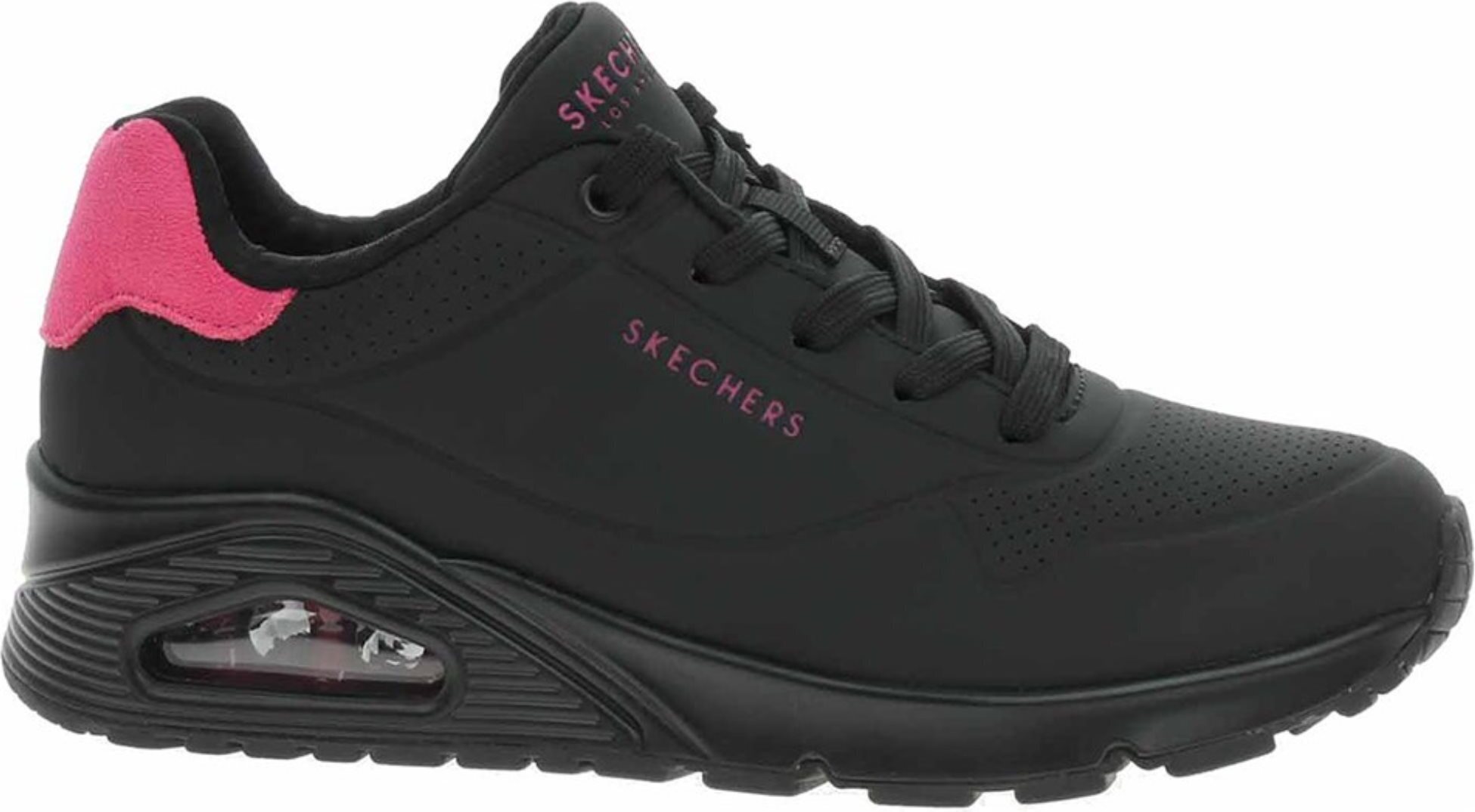 Marke: SkechersModell-Nr.: 177092 BKHPModellname: UNO - POP BACKArt: Damenschuhe - sportliche Schnür- HalbschuheFarbe: schwarz +, pink (black)Obermaterial: Synthetik (Durabuck, Veloursynthetik, Perforation)Innenfutter: Textil - weich gepolstertInnensohle: Textil Fußbett, Air Cooled Memory FoamWechselfußbett: nicht herausnehmbare InnensohleLaufsohle: Gummisohle, Skech AirVerschluss: 5fach SchnürungAbsatz: flach - kein AbsatzSchuhform: rundGrößenangabe: fällt normal ausWeitenangabe: G - normal Weiteinterne Artikelnummer für Ihre Rückfragen: 236-00-0403