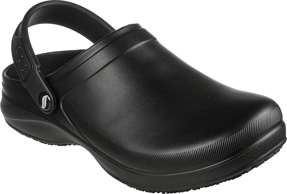 Dieser rutschhemmende Clog verfügt über ein geformtes, flexibles EVA-Obermaterial mit einem herausnehmbaren Arch Fit®-Konturfußbett und einem umklappbaren Fersenriemen.