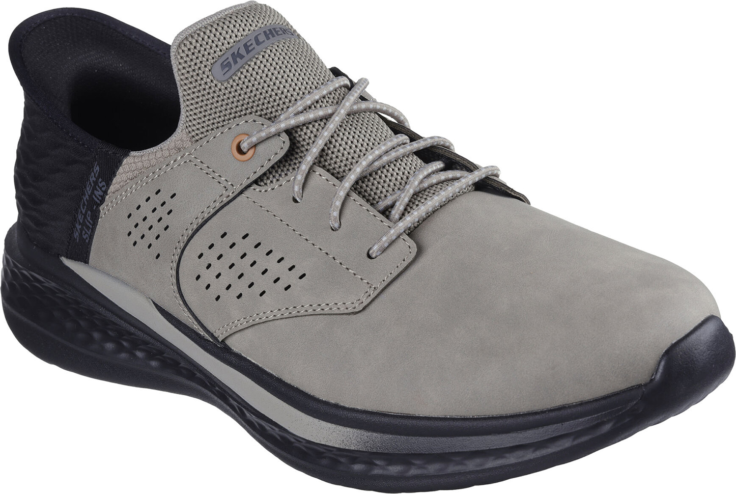 Marke: SkechersModell-Nr.: 210890 CMNTModellname: SLADE - MACKLINArt: Herrenschuhe - Slipper - Halbschuhe, HANDS FREE SLIP INSFarbe: grau +, schwarz (cement)Obermaterial: Synthetik +, Textil (beschichtetes Leder)Innenfutter: Textil - weich gepolstertInnensohle: Textil Komfort Fußbett, Air Cooled Memory Foam, gogamat® ARCHWechselfußbett: nicht herausnehmbare InnensohleLaufsohle: TR Synthetik =, rutschfest +, leicht +, flexibelAbsatz: flach - kein AbsatzSchuhform: rundGrößenangabe: fällt normal ausWeitenangabe: G - normal Weiteinterne Artikelnummer für Ihre Rückfragen: 146-20-0054