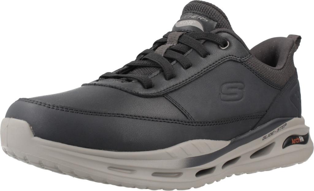 Marke: SkechersModell-Nr.: 210981 BLKModellname: ARCH FIT ORVAN - MOXLEYArt: Herrenschuhe - bequeme Slipper - Halbschuhe, Hands Free Slip Ins SneakerFarbe: schwarz +, Sohle in grau (black)Obermaterial: Echtleder +, Synthetik (beschichtetes Fettleder)Innenfutter: Textil - weich gepolstertInnensohle: Textil Komfort Fußbett, Air Cooled Arch FitWechselfußbett: nicht herausnehmbare InnensohleLaufsohle: PU (Polyurethan) - extra leicht, GLIDE STEP TechnologieVerschluss: Gummizug - ohne VerstellmöglichkeitAbsatz: flach - kein AbsatzSchuhform: rundGrößenangabe: fällt normal ausWeitenangabe: G - normal Weite (RELAXED FIT)interne Artikelnummer für Ihre Rückfragen: 148-00-0099
