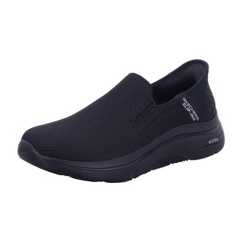 Marke: SkechersModell-Nr.: 216600 BBKModellname: GO WALK ARCH FIT 2.0 - HANDS FREE 2Art: Herrenschuhe - Slipper - Halbschuhe, HANDS FREE SLIP INSFarbe: all black (black)Obermaterial: Textil (Maschinen Waschbar)Innenfutter: Textil / Mesh - atmungsaktivInnensohle: Textil Komfort Fußbett, Arch FitWechselfußbett: nicht herausnehmbare InnensohleLaufsohle: TR Synthetik =, rutschfest +, leicht +, flexibelAbsatz: flach - kein AbsatzSchuhform: rundGrößenangabe: fällt normal ausWeitenangabe: G - normal Weiteinterne Artikelnummer für Ihre Rückfragen: 146-00-0105
