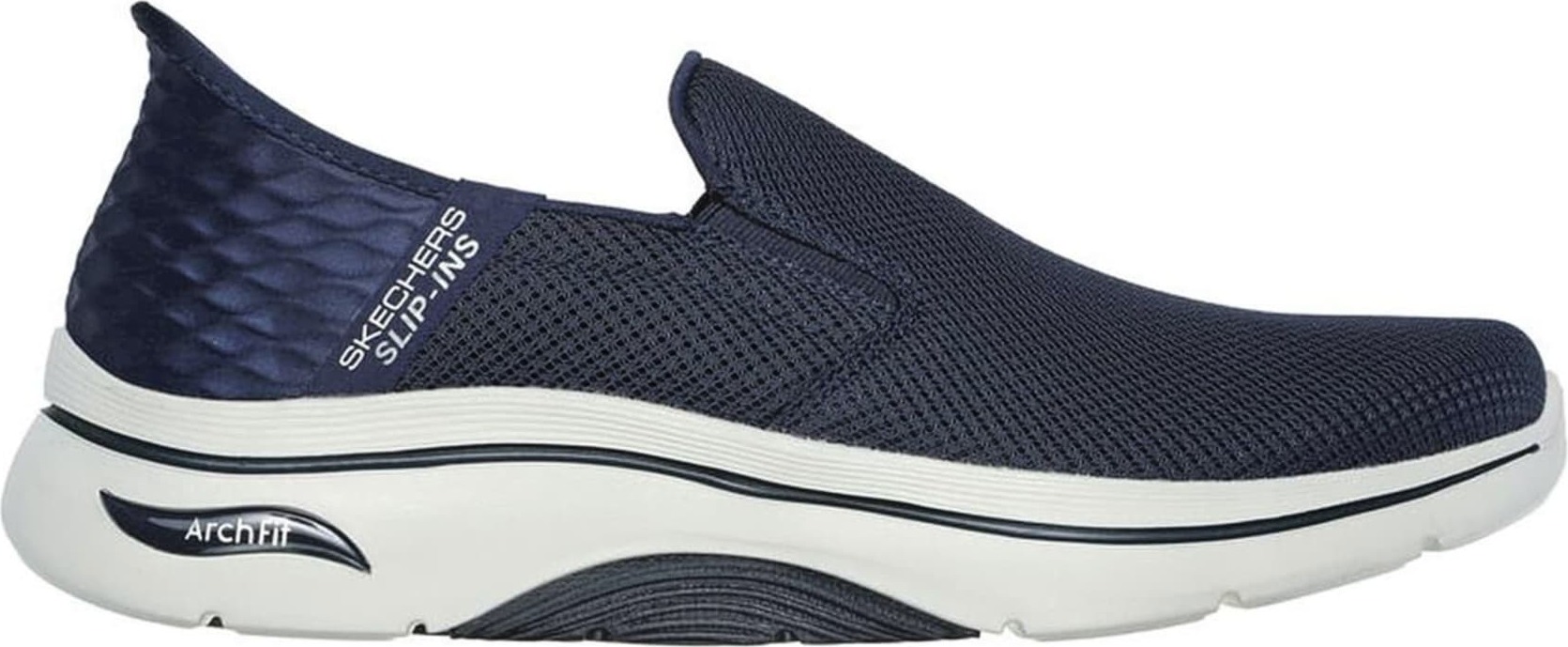 Marke: SkechersModell-Nr.: 216600 NVYModellname: GO WALK ARCH FIT 2.0 - HANDS FREE 2Art: Herrenschuhe - Slipper - Halbschuhe, HANDS FREE SLIP INSFarbe: dunkelblau +, Sohle in grau +, Streifen in schwarz (navy)Obermaterial: Textil (Maschinen Waschbar)Innenfutter: Textil / Mesh - atmungsaktivInnensohle: Textil Komfort Fußbett, Arch FitWechselfußbett: nicht herausnehmbare InnensohleLaufsohle: TR Synthetik =, rutschfest +, leicht +, flexibelAbsatz: flach - kein AbsatzSchuhform: rundGrößenangabe: fällt normal ausWeitenangabe: G - normal Weiteinterne Artikelnummer für Ihre Rückfragen: 146-81-0061