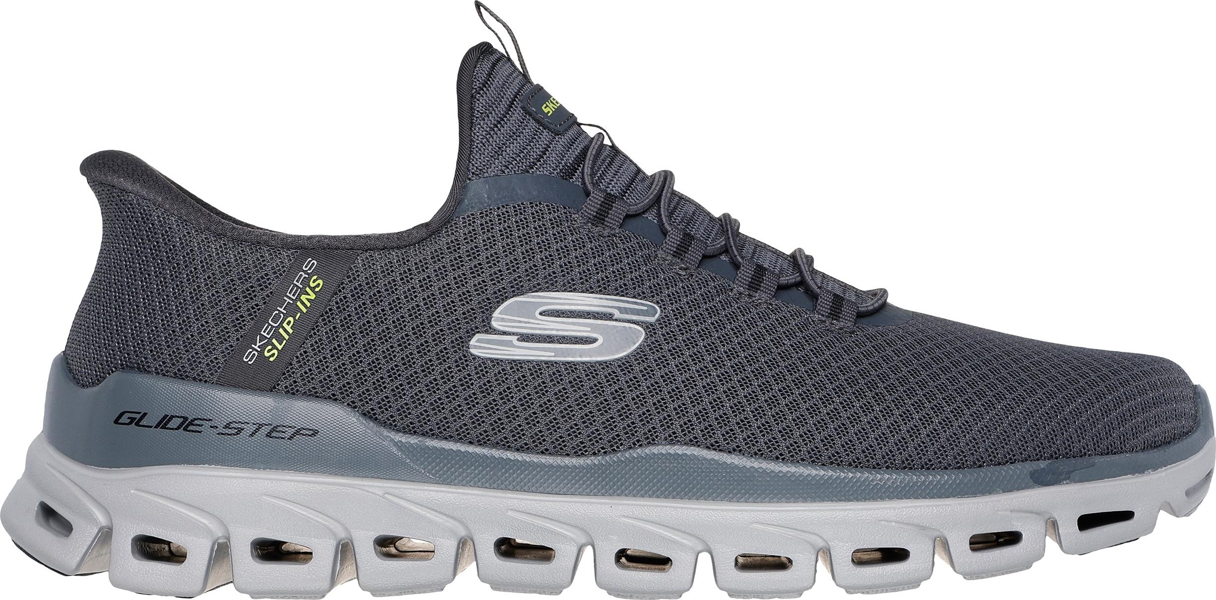 Marke: SkechersModell-Nr.: 233010 CHARModellname: GLIDE STEP - NOXUSArt: Herrenschuhe - sportliche Slipper - Halbschuhe, Slip-Ins SneakersFarbe: grau +, schwarz +, Sohle in hellgrau (charcoal)Obermaterial: TextilInnenfutter: Textil / Mesh - atmungsaktiv, weich gepolstert, SockenkonstruktionInnensohle: Textil Fußbett, Air Cooled Memory FoamWechselfußbett: nicht herausnehmbare InnensohleLaufsohle: PU-Laufsohle mit Gummi EinsätzeVerschluss: Gummizug - ohne VerstellmöglichkeitAbsatz: flach - kein AbsatzSchuhform: rundGrößenangabe: fällt normal ausWeitenangabe: G - normal Weiteinterne Artikelnummer für Ihre Rückfragen: 146-20-0058