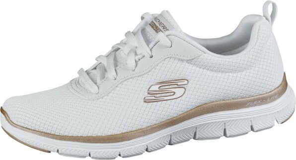 Veredeln Sie Ihren Look mit dem Skechers Flex Appeal 4.0 149303 Sneaker in angesagtem Weiß mit stilvollen Kontrastdetails. Der Schuh wurde speziell für Frauen designt und bietet eine erstklassige Verarbeitung und qualitativ hochwertige Materialien für einen perfekten Tragekomfort. Der Materialmix aus Synthetik und -#{Material}#- bringt eine coole Note in Ihren Alltag und das wunderschöne Weiß ist ein absoluter Hingucker. +