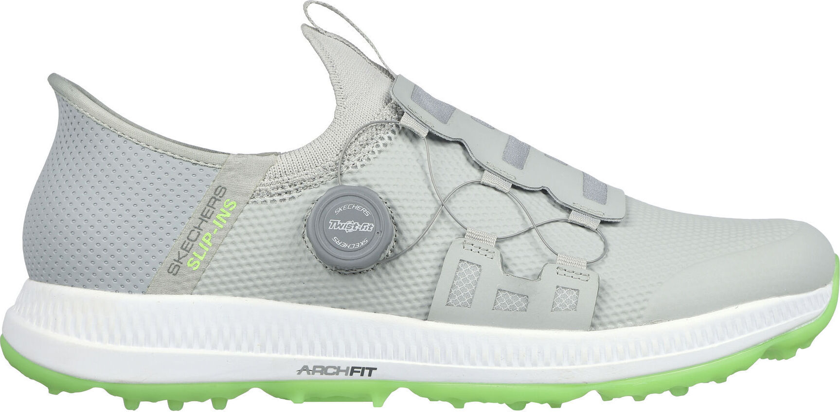 Skechers Hands Free Slip-ins™ für eine einfache PassformDas exklusive Heel Pillow™ hält Ihren Fuß sicher an seinem PlatzTwist Fit™ Drehverschluss für eine einstellbare, präzise PassformPatentierte Skechers Arch Fit® Einlegesohle mit von Podologen zertifizierter FußgewölbestützeVon Podologen entworfene Form, die auf der Grundlage von 20 Jahren Daten und 120.000 ungewichteten Fußscans entwickelt wurdeHerausnehmbare Einlegesohle passt sich Ihrem Fuß an, um Stöße zu reduzieren und das Gewicht besser zu verteilenSkechers GRIPFLEX spikelose TPU-Außensohle für hervorragende Traktion und FlexibilitätWasserdichter SchutzSynthetisches ObermaterialGepolsterter Kragen und ZungeSkechers GO GOLF® Logo-Aufdruck