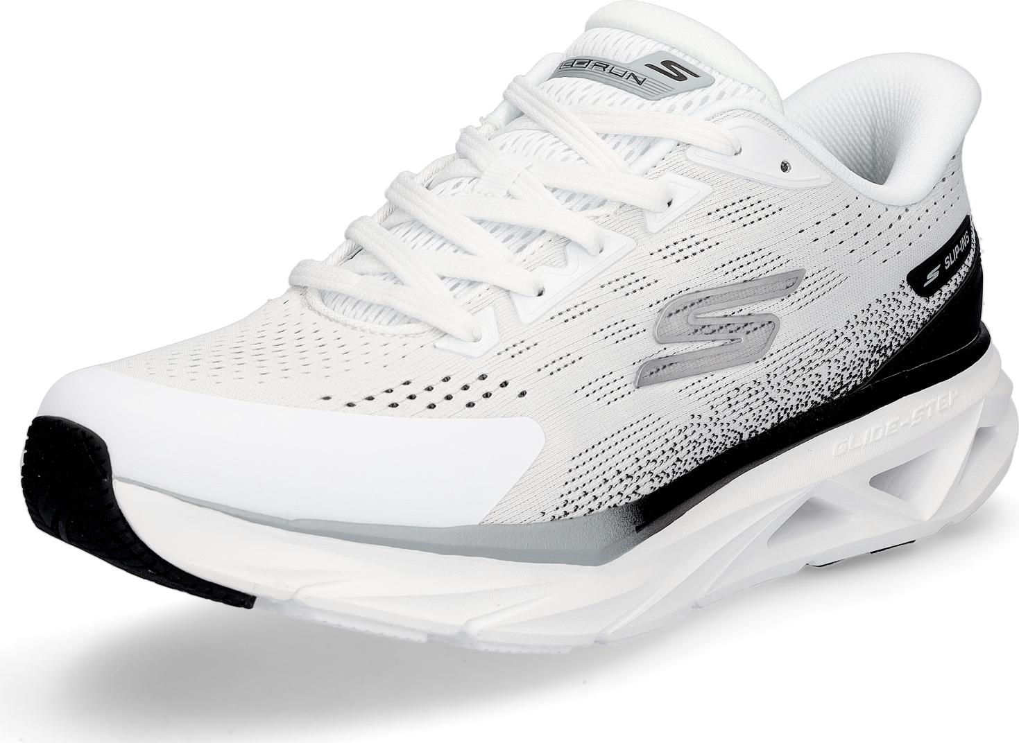 Skechers Herren Sneaker mit Slip-In Funktion aus Textil in Weiß-Schwarz mit Fersenpolsterung, dämpfender Glide-Step Sohle und Schnürung
