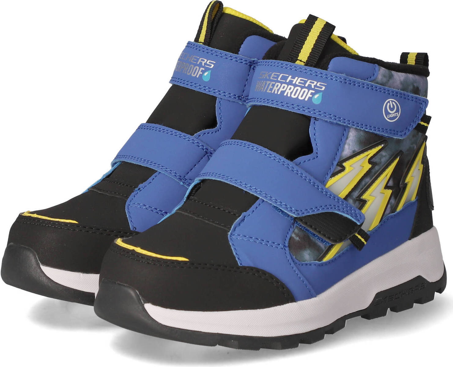 Skechers Jungen High Sneaker HYDRO FLASH Schwarz/Blau Synthetik-Textil-Mix - wasserfest -Klettverschluss - cooles Blitzmotiv - verstärkter Fußrahmen - gepolsterter Einstieg - praktische Anziehlasche - weiches Textilfutter - gepolsterte Decksohle - flexible, profilierte Laufsohle - schaltbare, blinkende LEDs.